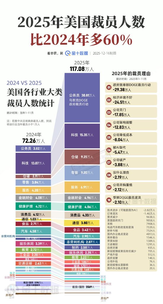 AI、DOGE、关税、政府停摆……哪件事最影响美国就业市场?科技、贸易、服务业、政府雇员……哪一行受到的打击最重?